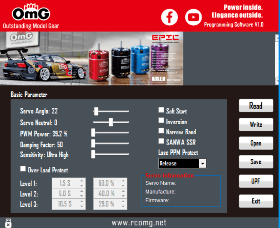 OMG Brushless Steering Servo Low Profile, Metal Gears, Programmable 20Kg
